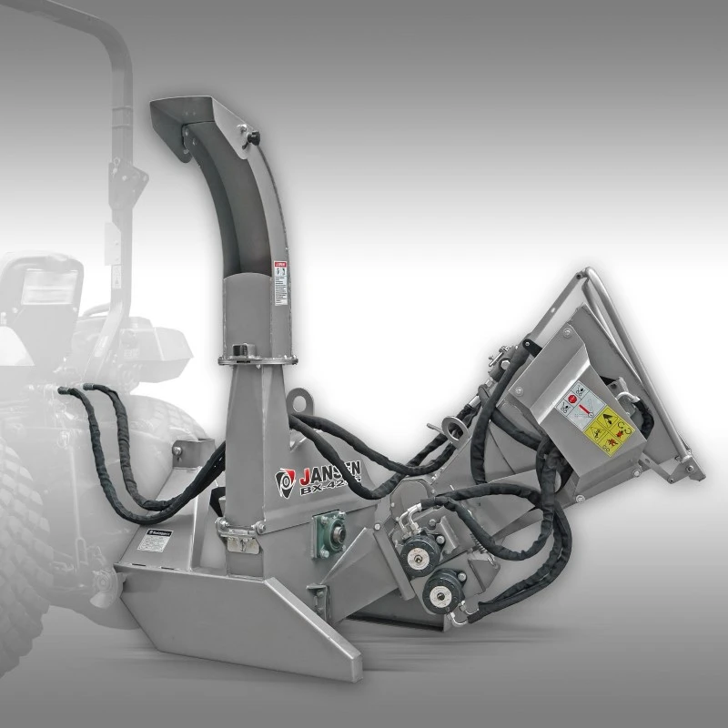 Door zijn hydraulische aanvoer is het werken met de BX-42RS een ware vreugde. Aanschuiven, drukken enz. hoeft bij dit model niet; dit wordt door 2 grote invoerrollen gedaan. De snelheid van de invoerrollen kan traploos gevarieerd worden. Dit is belangrijk voor het aanpassen van de invoersnelheid op de diameter van het hakselmateriaal. Kleinere diameters kunnen sneller door de machine gehaald worden dan grotere diameters. Mocht het hakselmateriaal toch blokkeren, kan door middel van de grote beugel aan de trechter de doorgang ook in een achteruitgang gezet worden. Verder kan de doorloop van het te hakselen goed ook door middel van de beugel gestopt worden. De verzorging loopt via de tractorhydrauliek; hiervoor is een hydraulische druk aanvoer nodig en een drukloze terugloop of een dubbel werkend hydraulisch ventiel.
